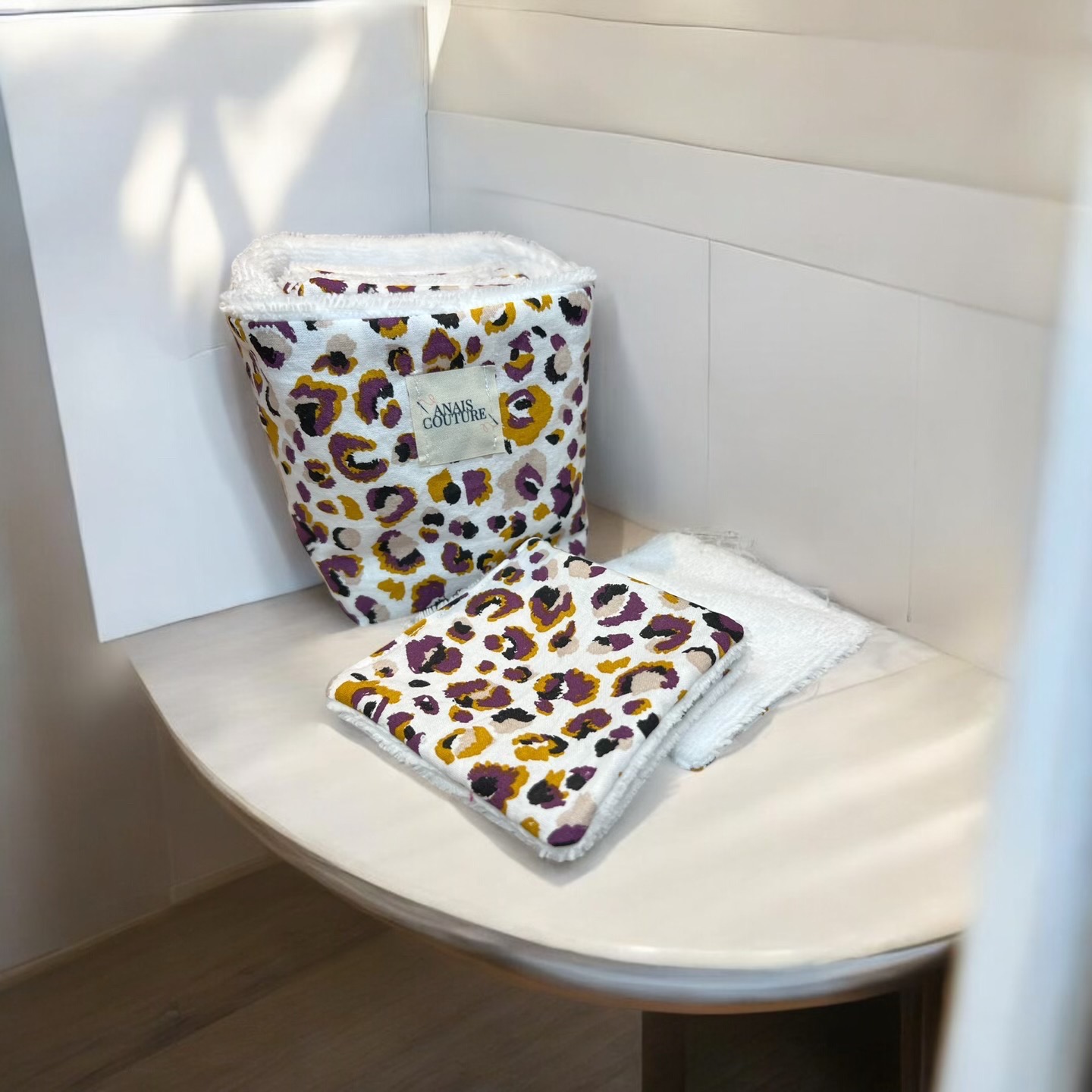 Ensemble assortie, la panière et ses 10 cotons lavable.