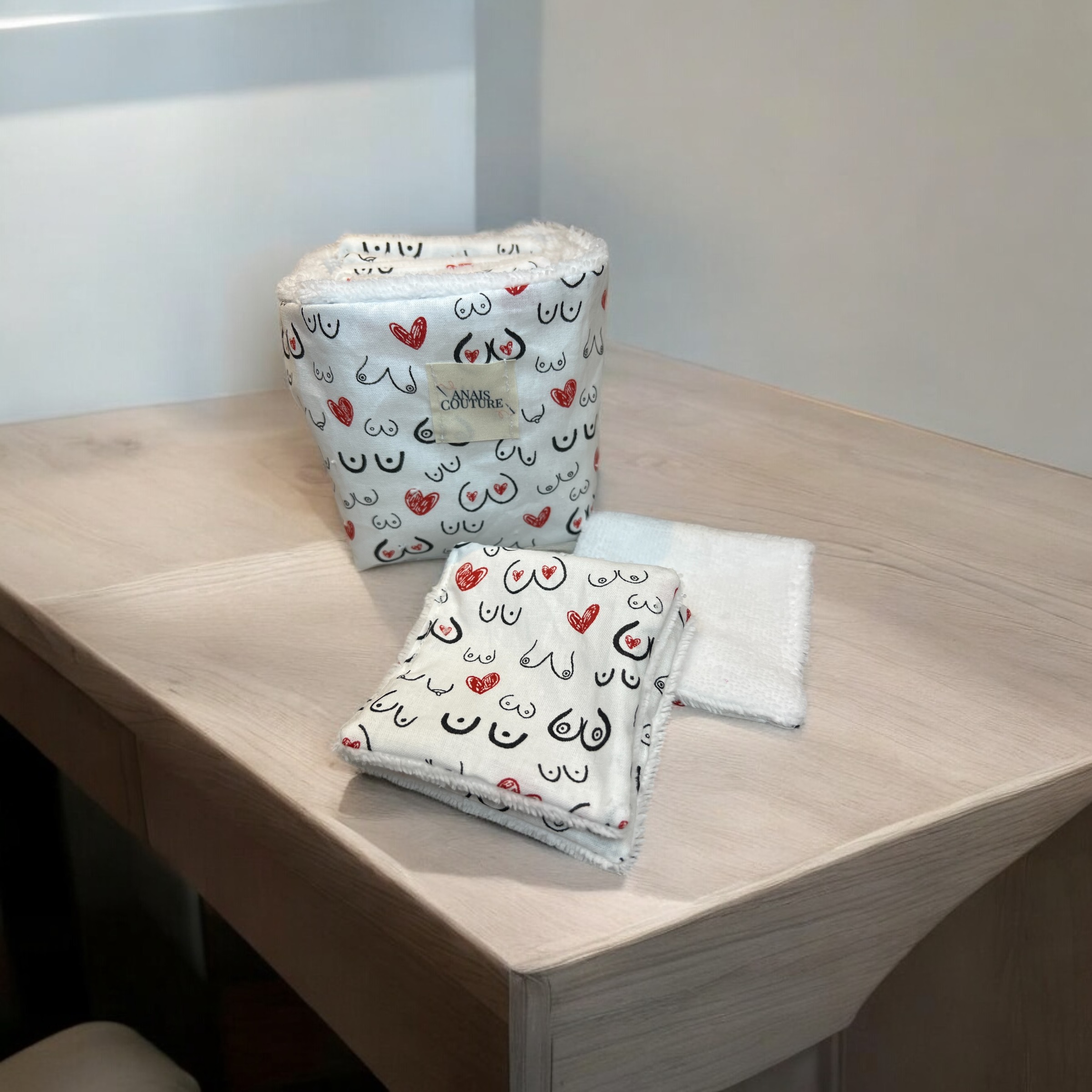 Ensemble assortie, la panière et ses 10 cotons lavable.