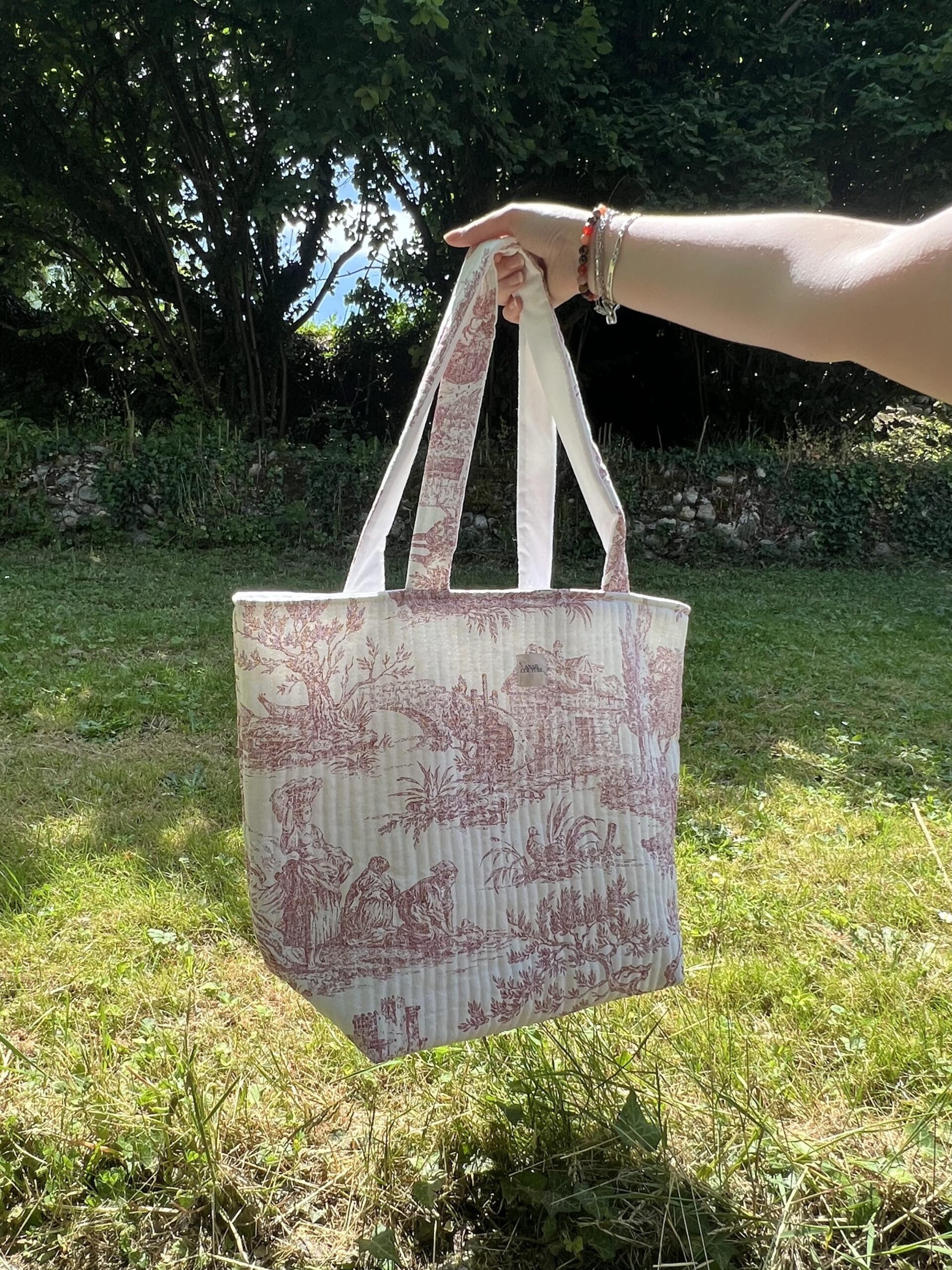 Craquez pour ce sac cabas matelassé fait main, alliant charme intemporel et confort moderne. Confectionné dans une toile de Jouy au style vintage, ce modèle se distingue par son matelassage doux et ses finitions soignées. Léger mais solide, il vous accompagnera aussi bien en ville qu’à la campagne, pour faire vos courses, aller à la plage ou flâner au marché.